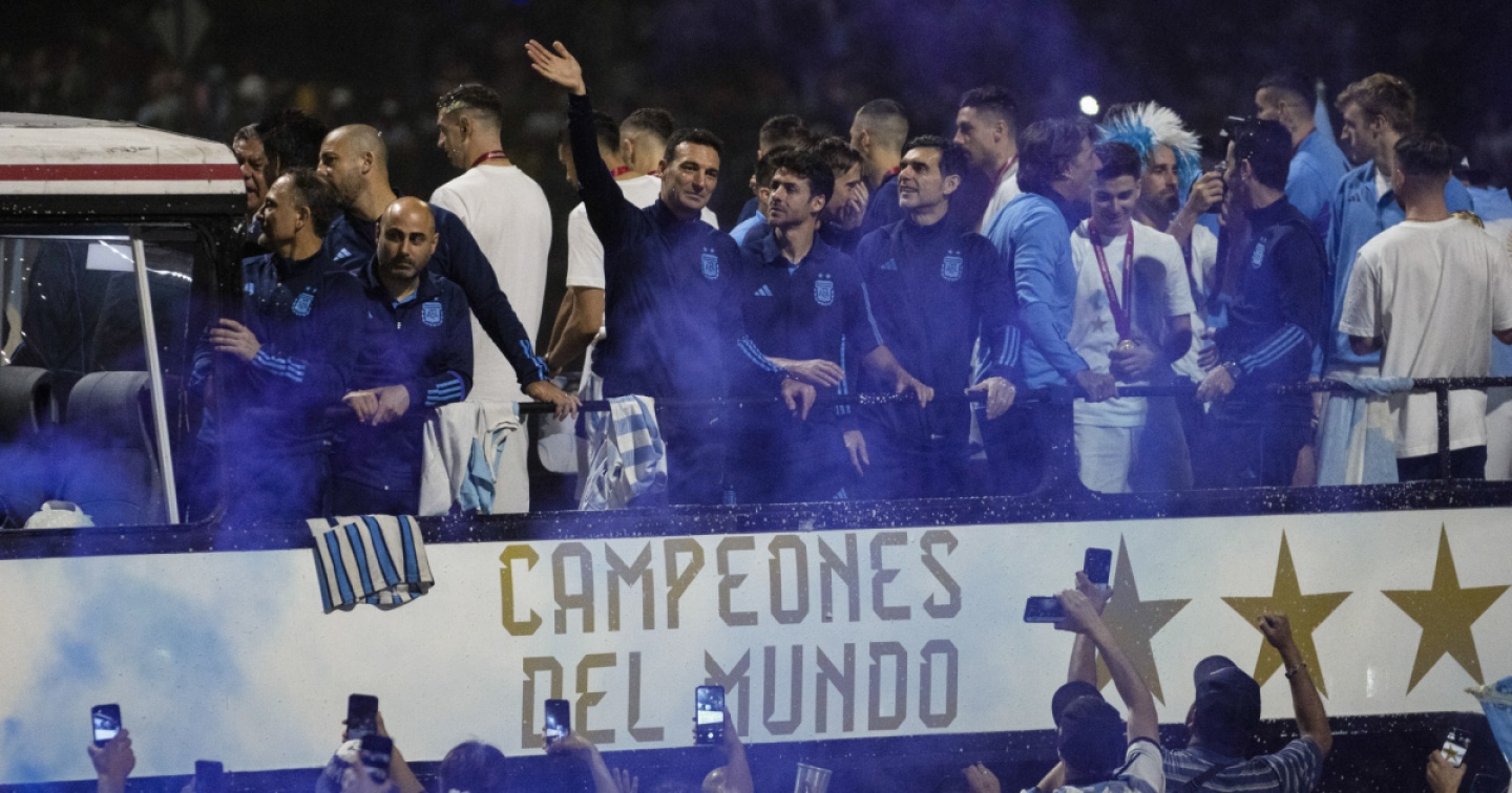 Diverse decine di migliaia di persone hanno accolto gli eroi di Doha al ritorno in Argentina. Il capitano Lionel Messi, simbolo del trionfo argentino, è stato il primo ad apparire in alto sulla scaletta dell’aereo, allo scalo di Ezeiza, con la coppa in mano. La delegazione intera è poi sfilata su un tappeto rosso. L’Airbus 330 coi colori bianco e azzurro della compagnia di bandiera (Aerolineas argentinas) portava sulla fusoliera la scritta ‘Una squadra, un Paese, un sogno’, mentre sulle ali di coda c’era l’immagine di Messi, De Paul e Di Marìa, eroi della finale vittoriosa contro la Francia. La squadra è poi salita su uno speciale autobus decorato con la terza stella di campione del mondo per raggiungere il vicino centro d’allenamento della Federcalcio argentina (Afa) sfilando fra due ali di folla accampata da ore e in delirio per la conquista di un trofeo atteso ben 36 anni.