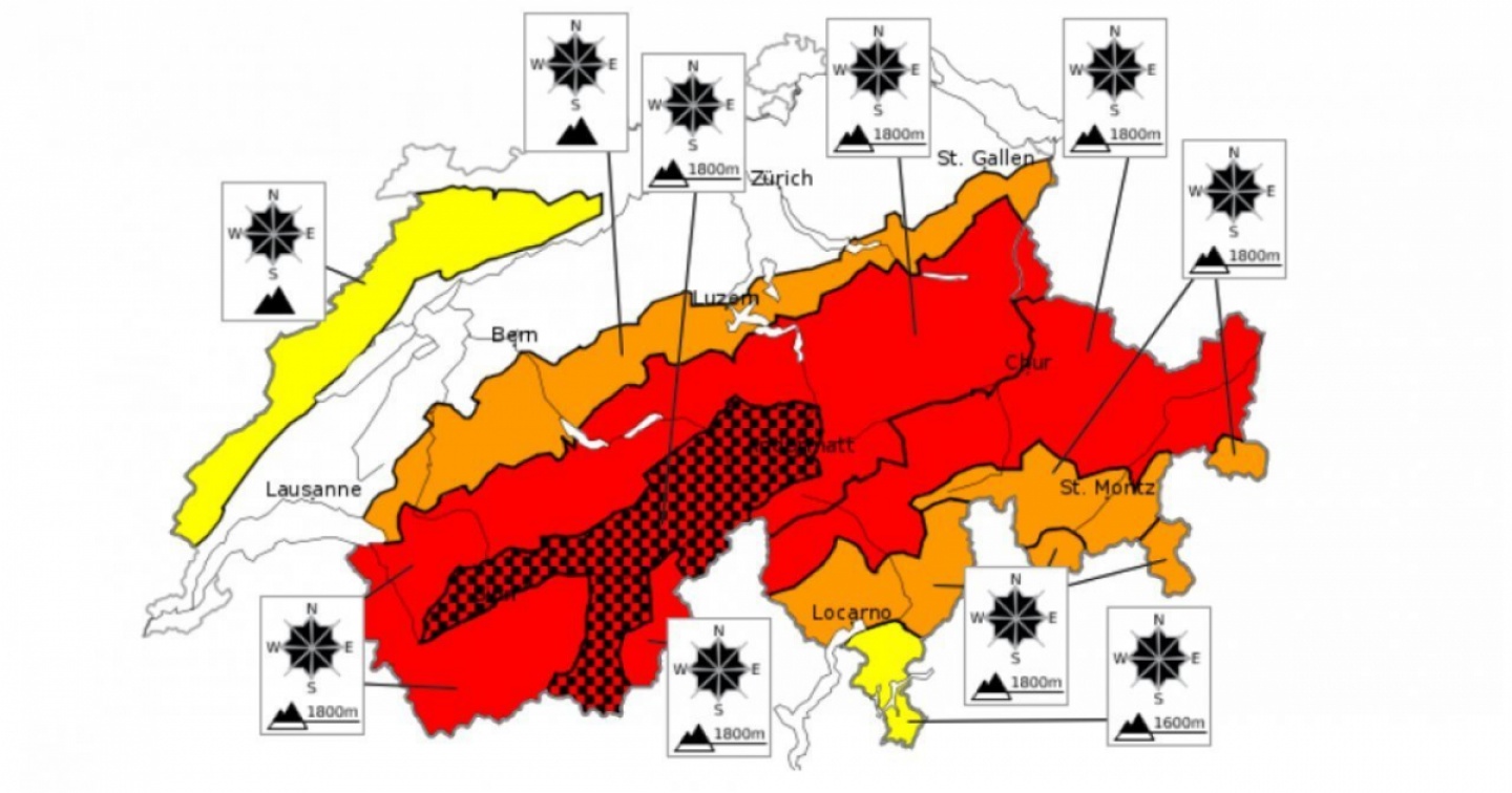 L'Istituto federale di ricerca per la foresta, la neve e il paesaggio (Wsl), ha reso noto che il pericolo di valanghe è particolarmente alto (5 su 5) sulla cresta settentrionale delle Alpi dall'Alto Vallese fino a Glarona. È fortemente sconsigliato lo sci alpinismo, le escursioni con le ciaspole e le discese fuori pista. In questo perimetro, tutte le esposizioni sopra i 1800 metri sono pericolose, sottolinea l'istituto. Nelle zone circostanti - che includono anche parte dei Grigioni e l'Alto Ticino - il rischio è elevato (4 su 5) sopra i 2000 metri. Il manto nevoso è instabile e molte slavine di grosse dimensioni potrebbero staccarsi spontaneamente e scendere fino a valle.