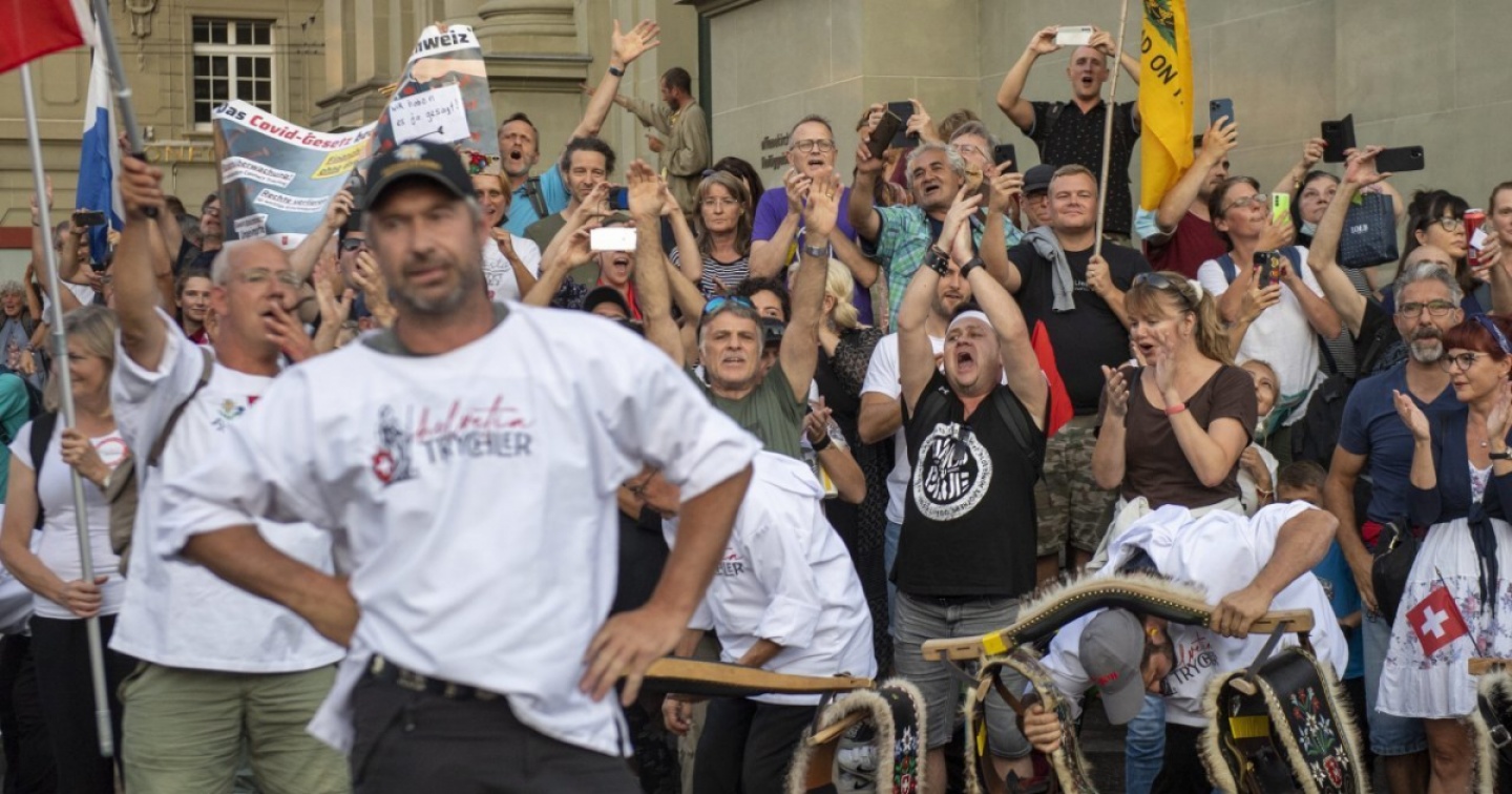Almeno un migliaio di persone si è riunito a Berna per una manifestazione spontanea contro l'estensione del certificato Covid. «La vaccinazione obbligatoria dalla porta di servizio è qui», denunciava un appello sui social media. L'appello è stato lanciato da alcune organizzazioni che tempo si oppongono alle misure anti Covid. Alcuni manifestanti hanno sventolato bandiere della Svizzera e dei Cantoni. C'erano anche suonatori di campanacci e alcuni partecipanti indossavano le magliette viola dell'organizzazione 'Mass-Voll'.