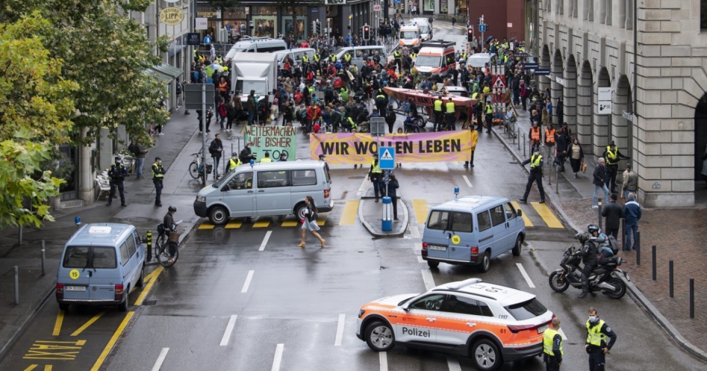 La polizia municipale di Zurigo è stata dispiegata nel centro della città e ha transennato la strada. Gli agenti sono intervenuti alle 13.20 e hanno sgomberato gli attivisti seduti in mezzo ad un incrocio. I manifestanti hanno opposto solo resistenza passiva. Diverse decine di dimostranti occupano ancora una parte della Uraniastrasse.