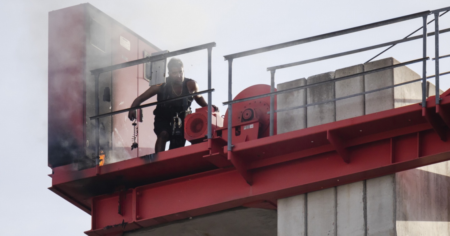 L’uomo si muoveva avanti e indietro lungo il braccio della gru e lanciava oggetti. Verso le 7.30 la cabina della gru è andata a fuoco: l’uomo si trovava all’esterno.