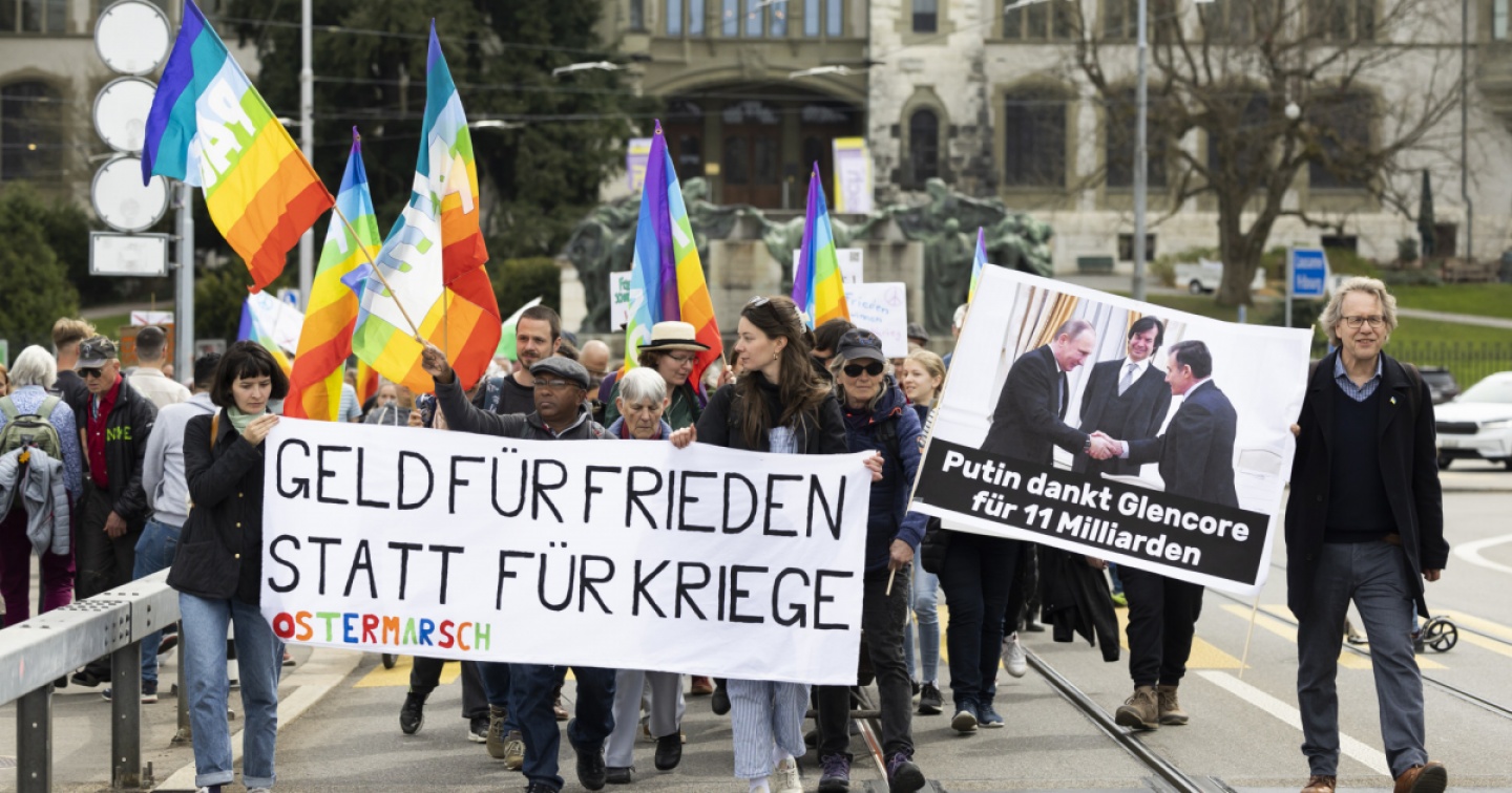 Circa 500 persone si sono riunite oggi davanti alla cattedrale di Berna per la tradizionale manifestazione pasquale per la pace. Circa 250 partecipanti sono partiti da Wabern (BE) e hanno marciato lungo l'Aare per raggiunger il luogo d'incontro. Al centro dell'evento c'era il ruolo dell'economia svizzera nella guerra in ucraina.