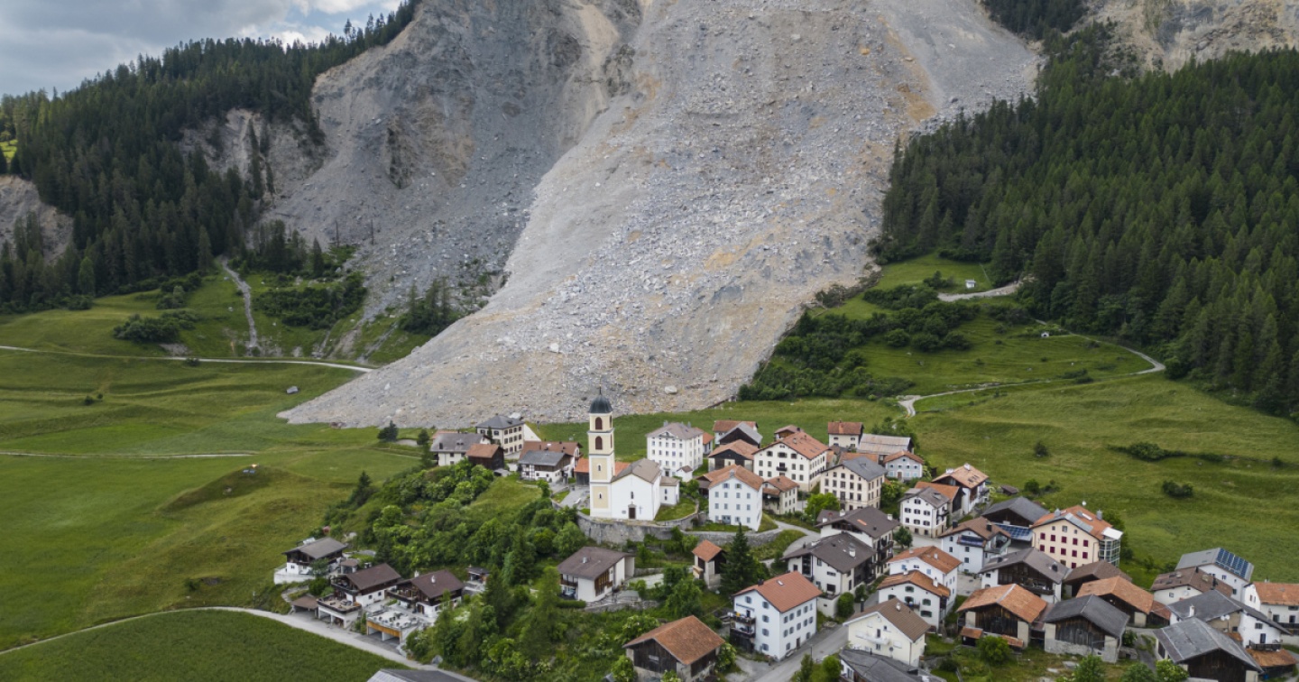 L'Istituto per lo studio della neve e delle valanghe ha sorvolato oggi con un drone la colata detritica scesa a valle nelle scorse ore a Brienz/Brinzauls e ha effettuato le prime misurazioni. Il suo volume complessivo è di 1,2 milioni di metri cubi. Sopra il villaggio si apre ora una grande voragine.