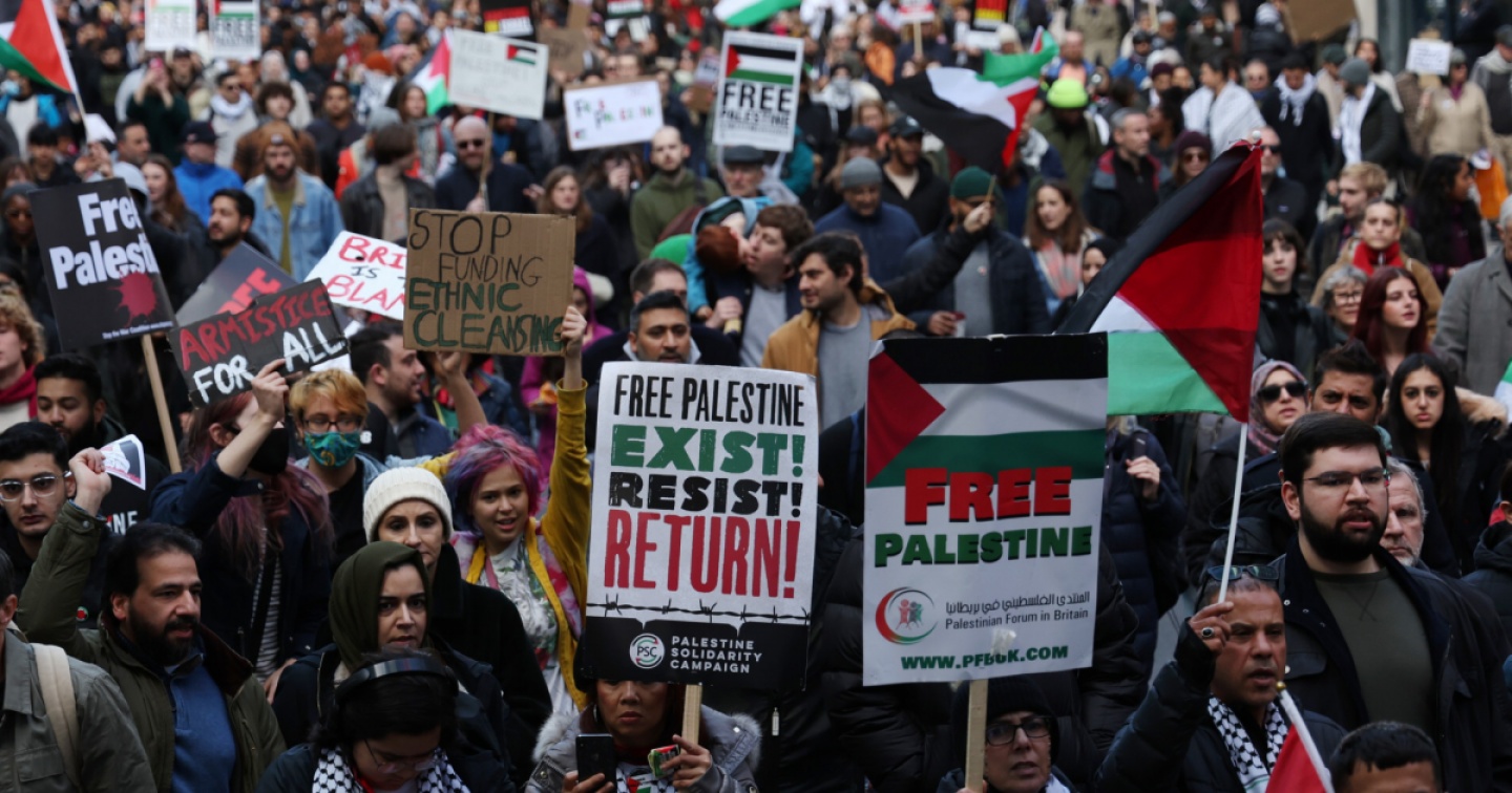 A Londra erano tremila le persone presenti alla manifestazione. I sostenitori hanno lanciato un appello per un cessate il fuoco a Gaza. La polizia partecipa in forze alla marcia, che ha suscitato preoccupazione perché coincide con l'Armistice Day, il giorno che commemora la fine dei combattimenti della I Guerra mondiale nel 1918. Le forze dell'ordine hanno arrestato 82 contromanifestanti