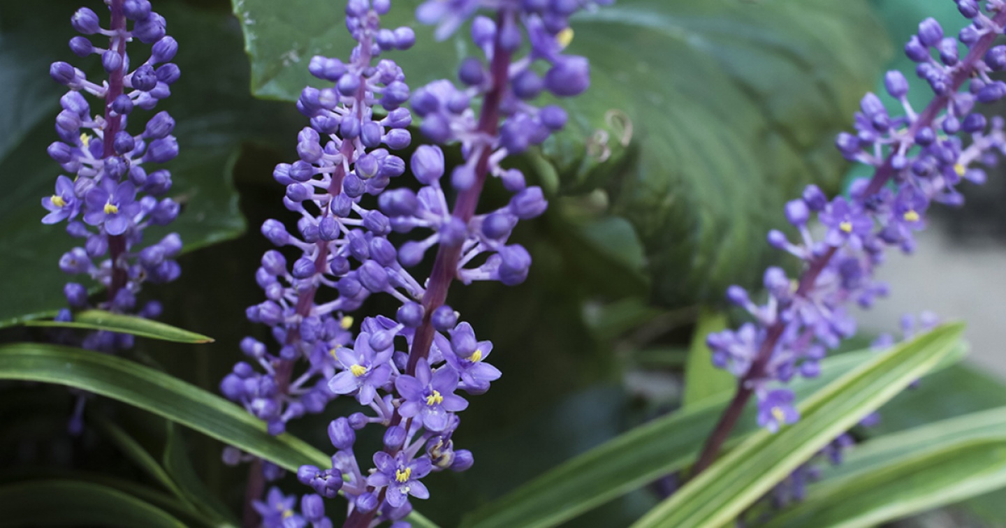 In alternativa, potremo optare per qualche erbacea perenne da utilizzare in ampie macchie, tali da poter competere con i volumi degli arbusti. Per esempio, davanti e sotto agli aceri possiamo piantare una folta famiglia di Liriope muscari caratterizzata proprio in questo periodo dalla fioritura blu porporina. Originaria della Cina e del Giappone, la pianta tollera ogni esposizione, anche se dà il meglio di sé al sole e su terreni fertili.