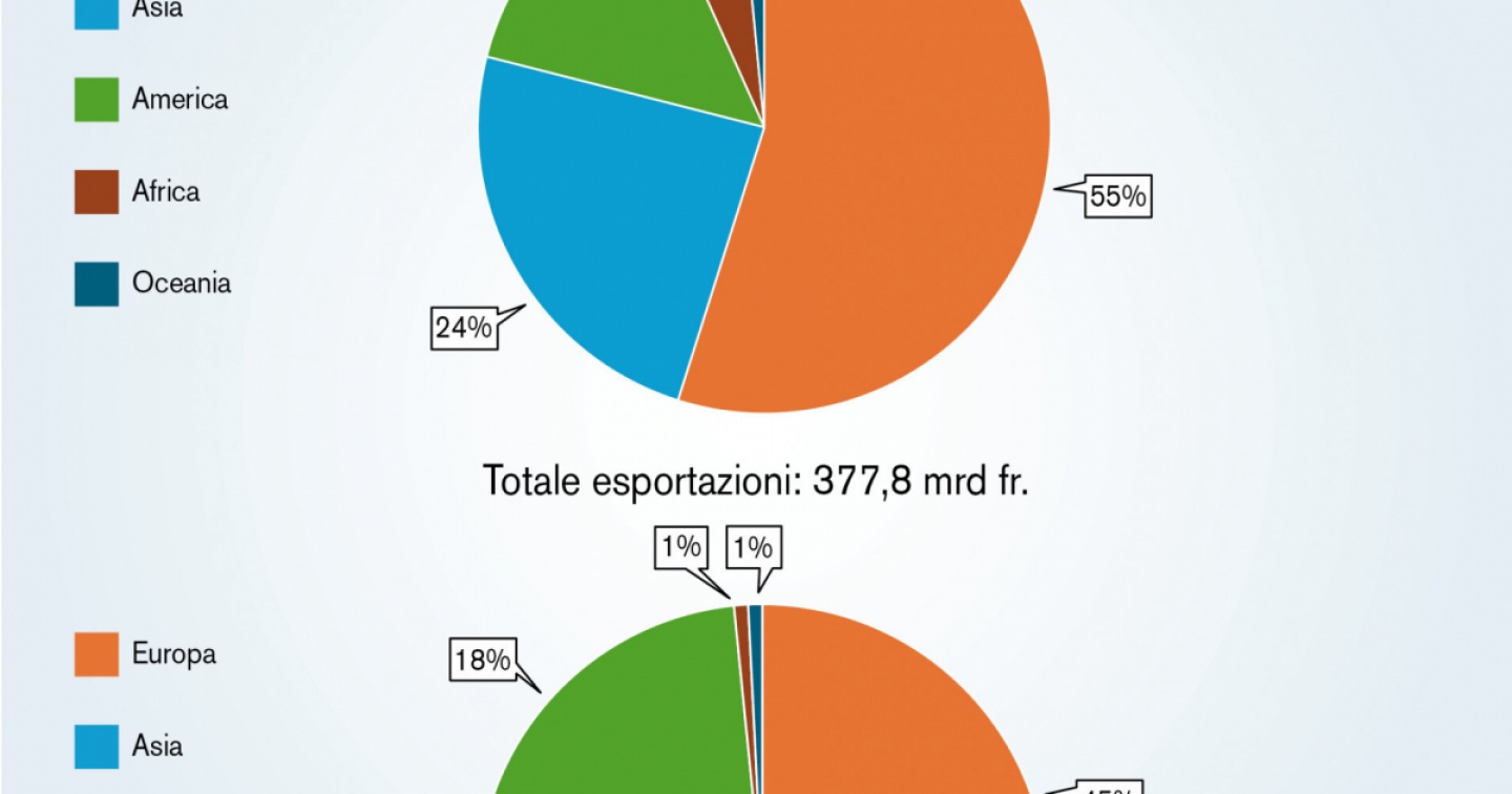 Chi pensa che il mercato europeo sia facilmente sostituibile con quelli di altri paesi farebbe bene a non illudersi, perché è di fatto impossibile pensare a una sostituzione tout court. Spesso gli spostamenti verso altri mercati fanno registrare qualche punto percentuale sull’arco di anni e comunque non oltre certi limiti che si potrebbero definire fisiologici. Eppure, alcuni cambiamenti meritano un’attenzione particolare, perché le conseguenze sulla nostra economia, anche quella ticinese, possono essere importanti.