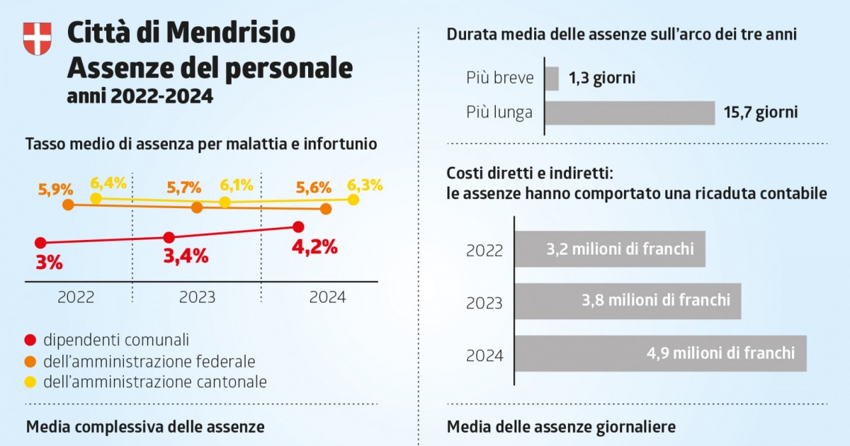 Assenze del personale: la Città di Mendrisio registra una tendenza all’aumento