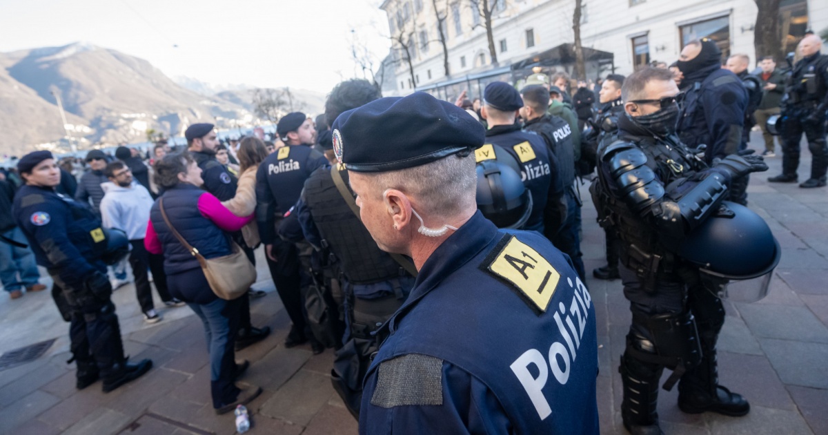 Forze dell'ordine costrette agli straordinari per tenere sotto controllo il corteo non autorizzato per le vie di Berna