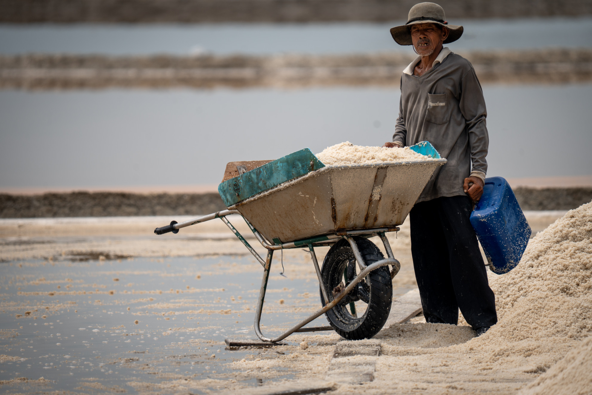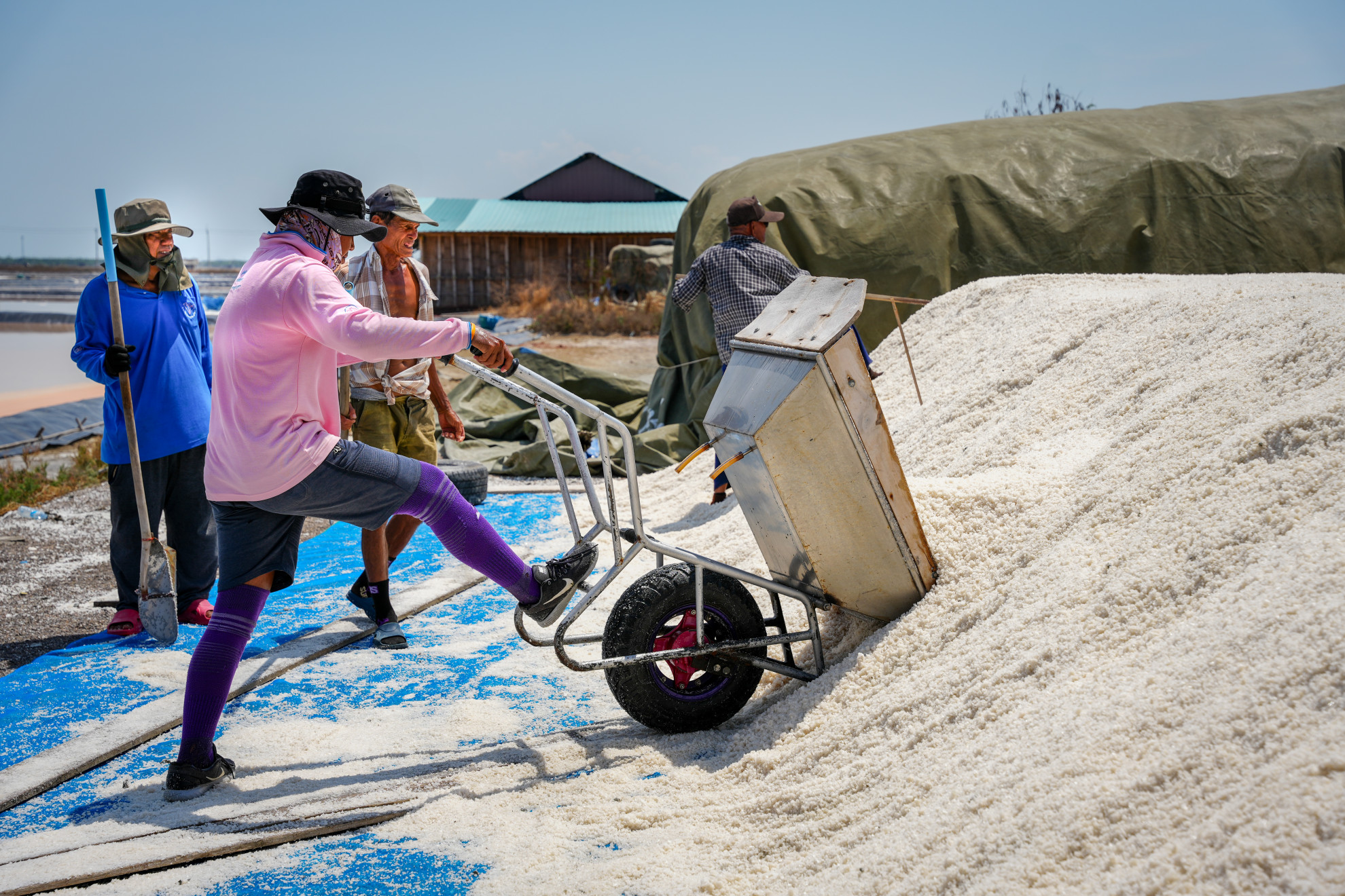 In questo tratto piatto e silenzioso, uomini e donne camminano su assi di legno, spingendo carretti carichi di cristalli. Non ci sono macchine, solo il rumore secco delle pale che graffiano la superficie. Il sale nasce così: dal sole, dal vento e dal sudore. «Mio padre faceva questo mestiere e prima ancora mio nonno. È il lavoro della nostra famiglia», dice Somchai, 57 anni, che lavora nella salina da quando era ragazzo. Si alza ogni giorno all’alba per iniziare la raccolta prima che il sole diventi insopportabile. Il suo passo è lento, i gesti identici a quelli di cinquant’anni fa. «Oggi siamo rimasti in pochi. Molti giovani se ne vanno a cercare lavoro nelle grandi città», aggiunge asciugandosi la fronte. Un tempo, lungo questa costa, le saline attive erano numerosissime.