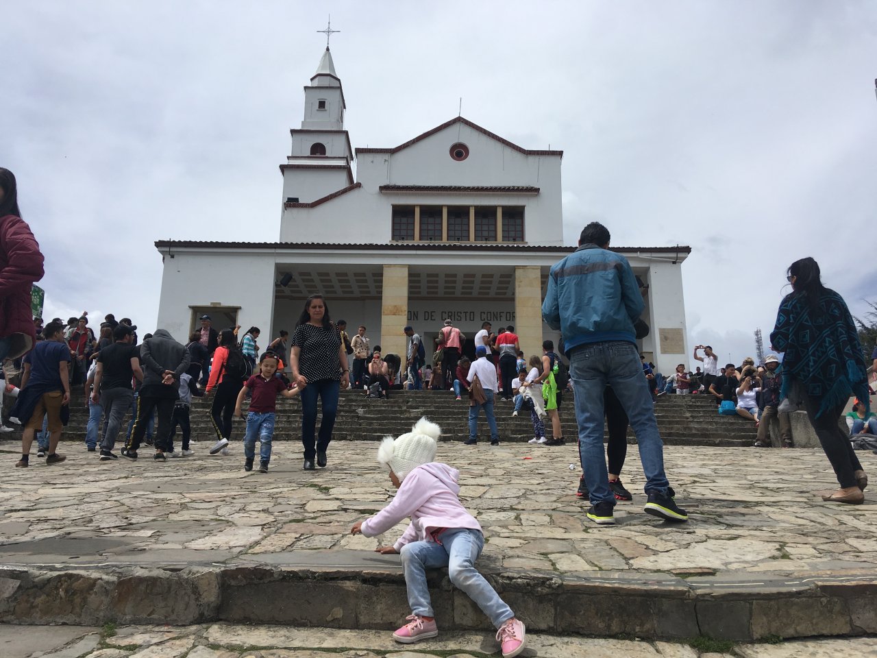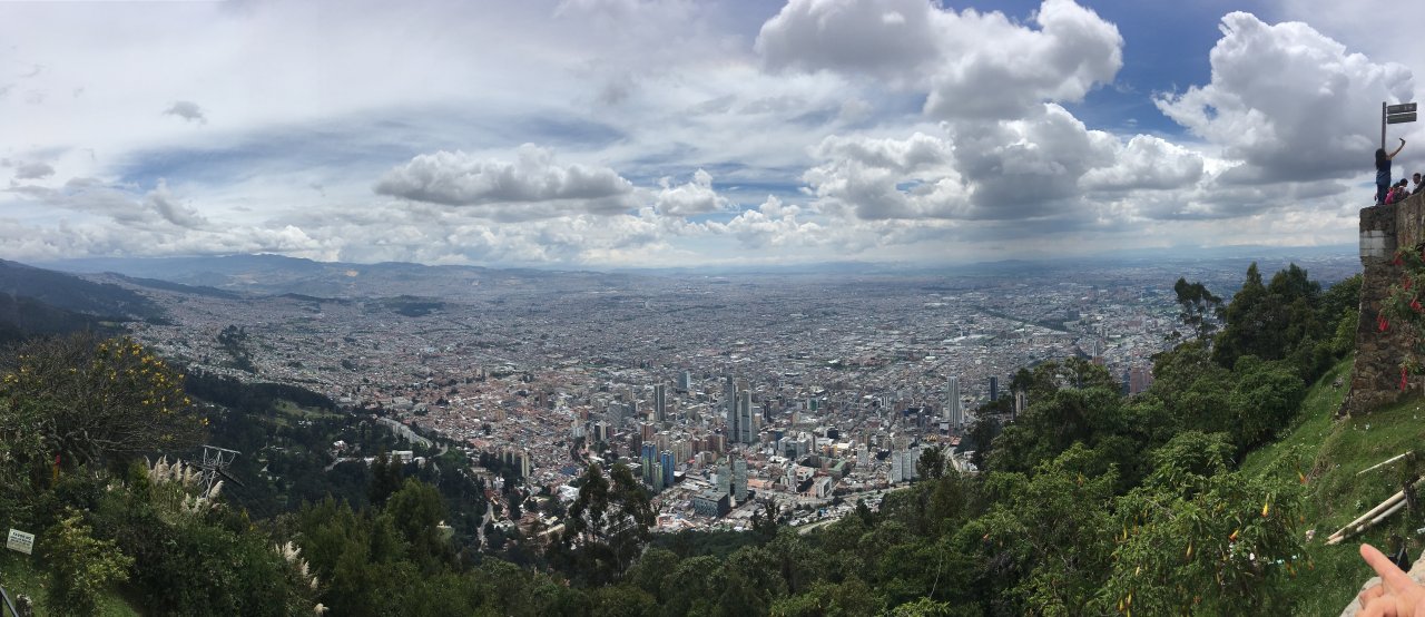 Bogotá devi vederla dall’alto, possibilmente di domenica, in cima al Monserrate, la montagna che sovrasta una città che è già montagna di suo, visto che sta a 2’640 metri d’altitudine. Lassù, la domenica, sembra che si siano dati appuntamento – contemporaneamente – tutti i suoi 8 milioni di abitanti. C’è talmente tanta gente che la coda per arrivare con la funicolare o la teleferica può durare ore. Quando finalmente arrivi e guardi in basso sei talmente lontano che la metropoli sembra ferma, disabitata, un enorme poster srotolato ai tuoi piedi. C’è tutta Bogotá ai tuoi piedi, ma ce l’hai anche tutt’intorno, perché sul Monserrate c’è posto per ogni esigenza: pregare, per chi trova posto dentro al santuario del Cristo Caduto, amoreggiare, respirare, bere birra ghiacciata, portare la famiglia in un posto che, di quella città, è simbolo e insieme via di fuga. Si viene al Monserrate per scappare da Bogotá e insieme celebrarla.