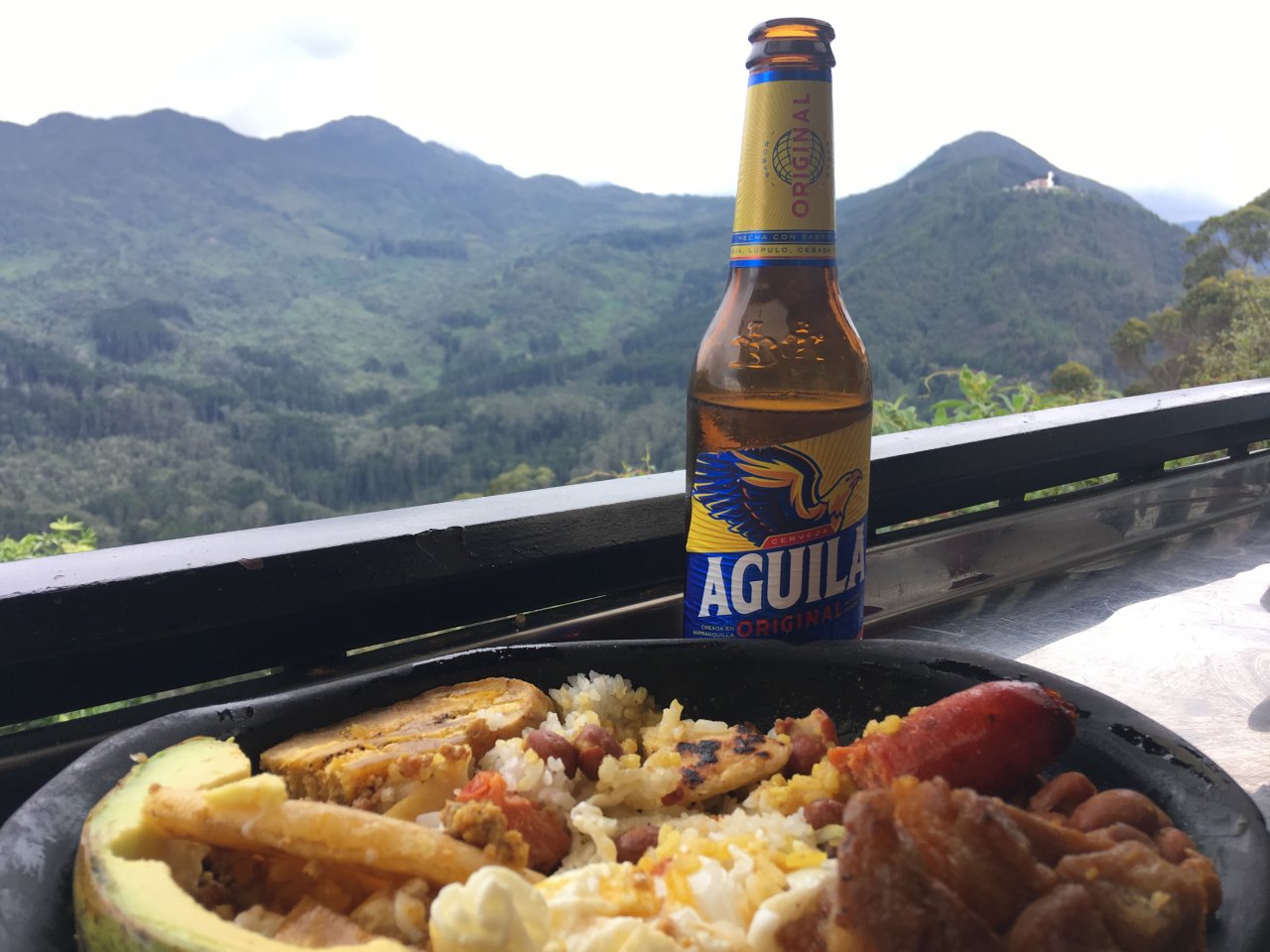 © R. ScarcellaIl Monserrate è alto 3ʼ152 metri: qui si trova cibo sia per lʼanima sia per lo stomaco. E da qui il panorama pare infinito...Saliti in cima, credenti o non credenti, si viene immediatamente attratti dalla chiesa, bianca, enorme, ma è una sensazione ingannevole, perché il vero centro di gravità è un altro, l’infinito mercato che si stringe fino a diventare una fila di ristoranti tutti uguali eppure diversi. Alcuni, sul retro, oltre le cucine – che vanno scavalcate nei modi più disparati, schivando camerieri, polli e fornelli – hanno un terrazzino: ti siedi e da una parte hai la città, dall’altra le montagne, alle spalle padelle che sfrigolano. Nel piatto puoi avere ogni ben di dio, sempre che tu non ti chieda troppo sulla provenienza, sulla cottura e sull’igiene di chi, in mezzo a quel marasma, ti sfama. Io ho scelto la bandeja paisa, che è tipica di Medellín e non della capitale, ma il richiamo è troppo forte. Un piatto che è mille piatti insieme: riso bianco, carne macinata e in polvere (ebbene sì, in polvere), uova, platano, chorizo, chicharron (scarti di maiale fritti), arepa (focaccine di mais), salsa di pomodoro, fagioli, avocado. Finirlo richiede stomaco, fame e pazienza, ma lassù fretta non ce n’è. Quel piatto straripante sembra fatto apposta per farti restare lì a ingaggiare un corpo a corpo che ha bisogno di pause in cui riempire gli occhi e non solo la pancia. Dopo, per riprenderti, puoi solo passeggiare, e non c’è posto migliore per farlo.