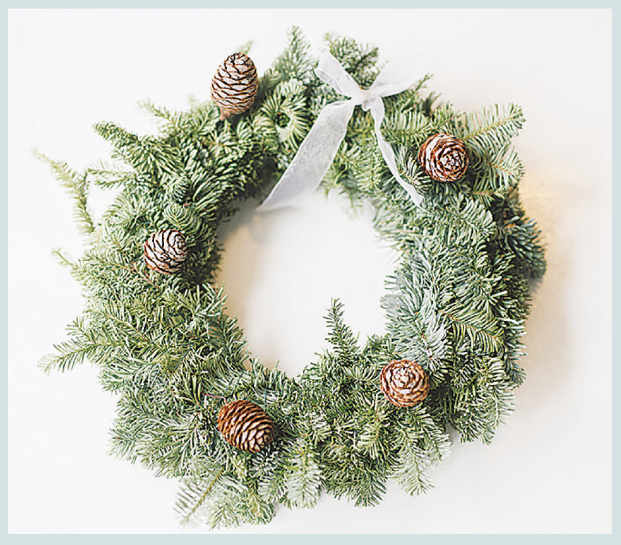 Questo progetto (scippato a ‘DIY ideas’) è un pochino impegnativo, ma di un effetto entusiasmante. Si comincia disegnando un paio d’ali alte 70 centimetri su un robusto cartone, si ritagliano e si cospargono di vernice argentata. Su tutta la loro superficie si incollano delle pigne già accuratamente dipinte di bianco. Una volta applicate le ali sulla porta di ingresso, ai vostri ospiti sembrerà di spiccare un bel volo!