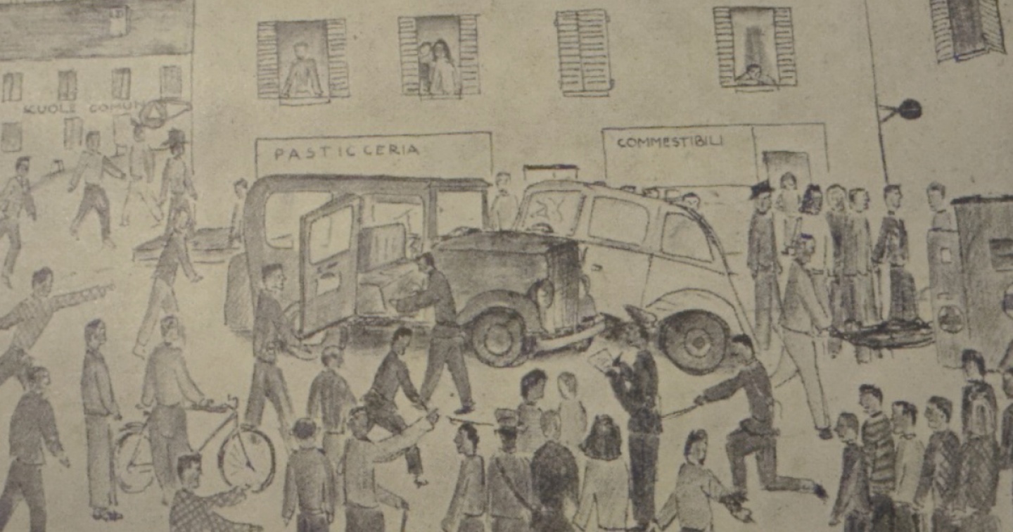 Apriamo ora una breve parentesi dedicata agli incidenti della circolazione, che tra gli anni Venti e gli anni Quaranta – complici le condizioni delle strade, la scarsa regolamentazione e l’ancor più carente rispetto della stessa – avvenivano con grande frequenza. Tanto che queste cronache venivano spesso introdotte da titoli evocativi quali "Il solito scontro" oppure "Il cozzo del giorno".