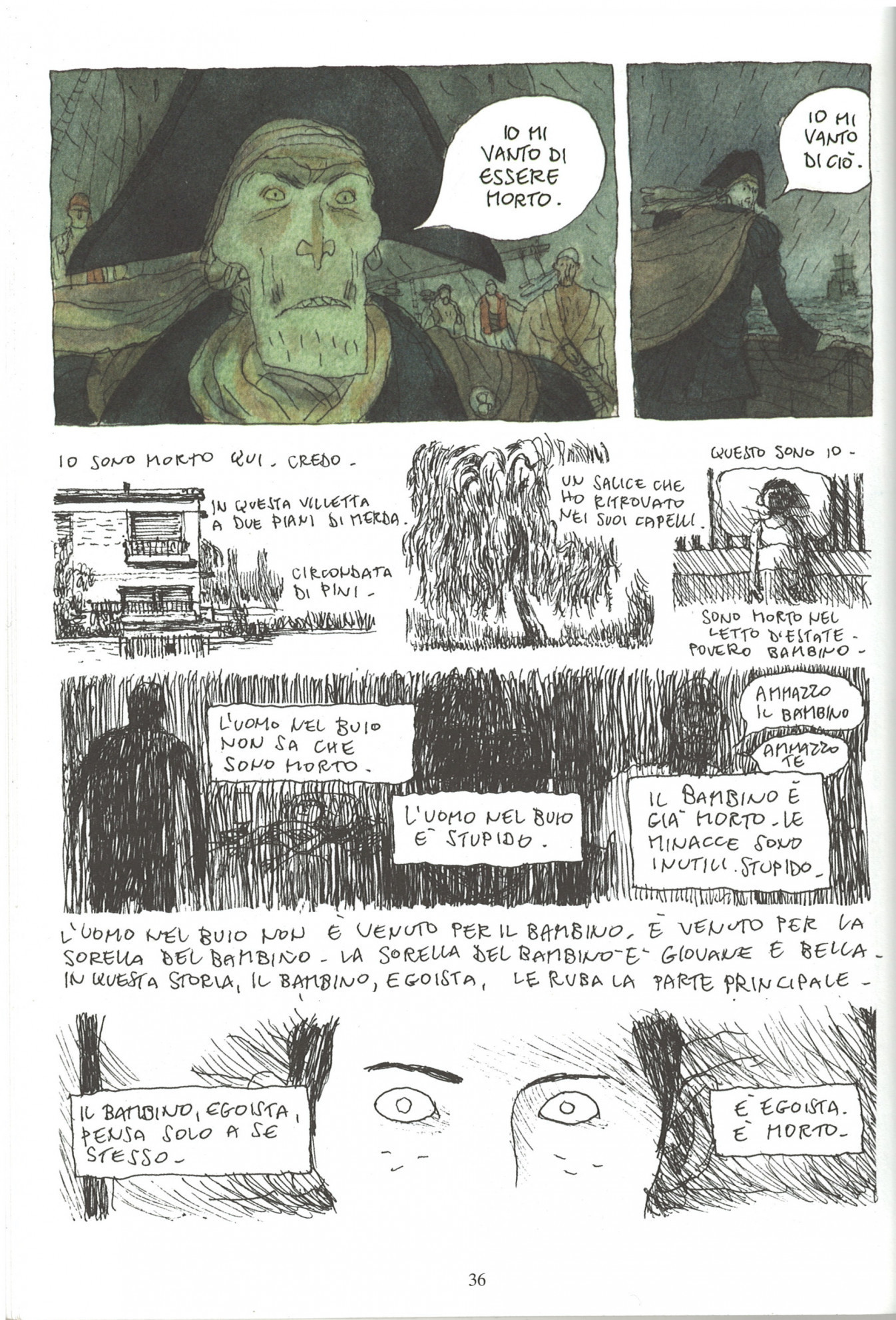 Gipi racconta una vita (la sua?) in prima persona, sprofondando nelle spire della memoria e ripercorrendo i traumi che l’hanno segnata. Intrecciandosi ai testi in un crescendo di espressività vertiginoso, il tratto diventa parte attiva del racconto, traccia immediata e diretta dell’ansia del protagonista, delle sue paure, del suo sguardo insieme sarcastico e candido sulle cose. Alle pagine "scarabocchiate" della (presunta) autobiografia, Gipi oppone tavole ad acquarello dove emerge un mondo di sogno, anche questo spietato ma innervato di bellezza e speranza.