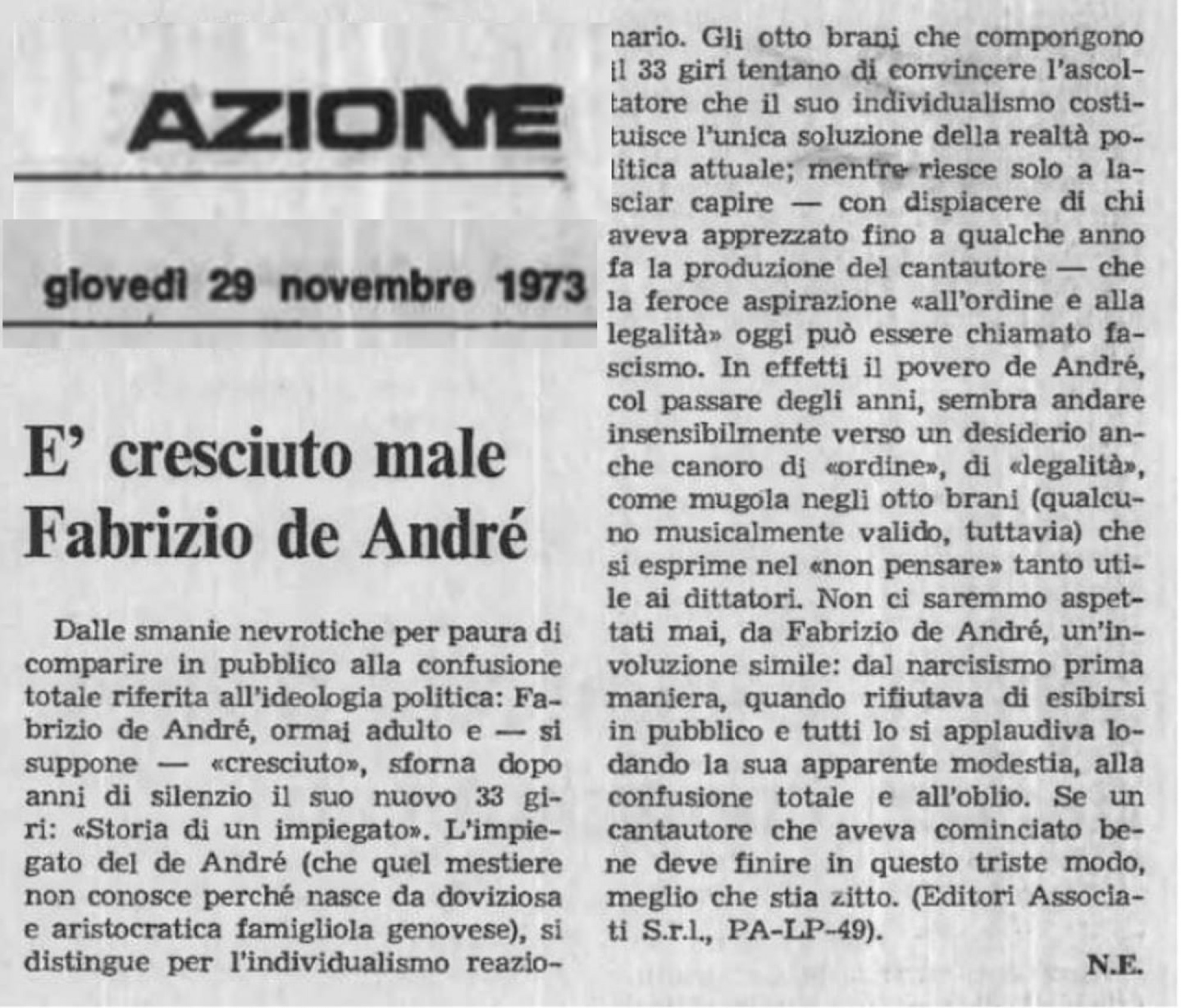 1975: Rimmel (De Gregori); Quelli che… (Jannacci); Volume 8 (De André); Ipertensione (Vecchioni); Io che non sono l’imperatore (Bennato).