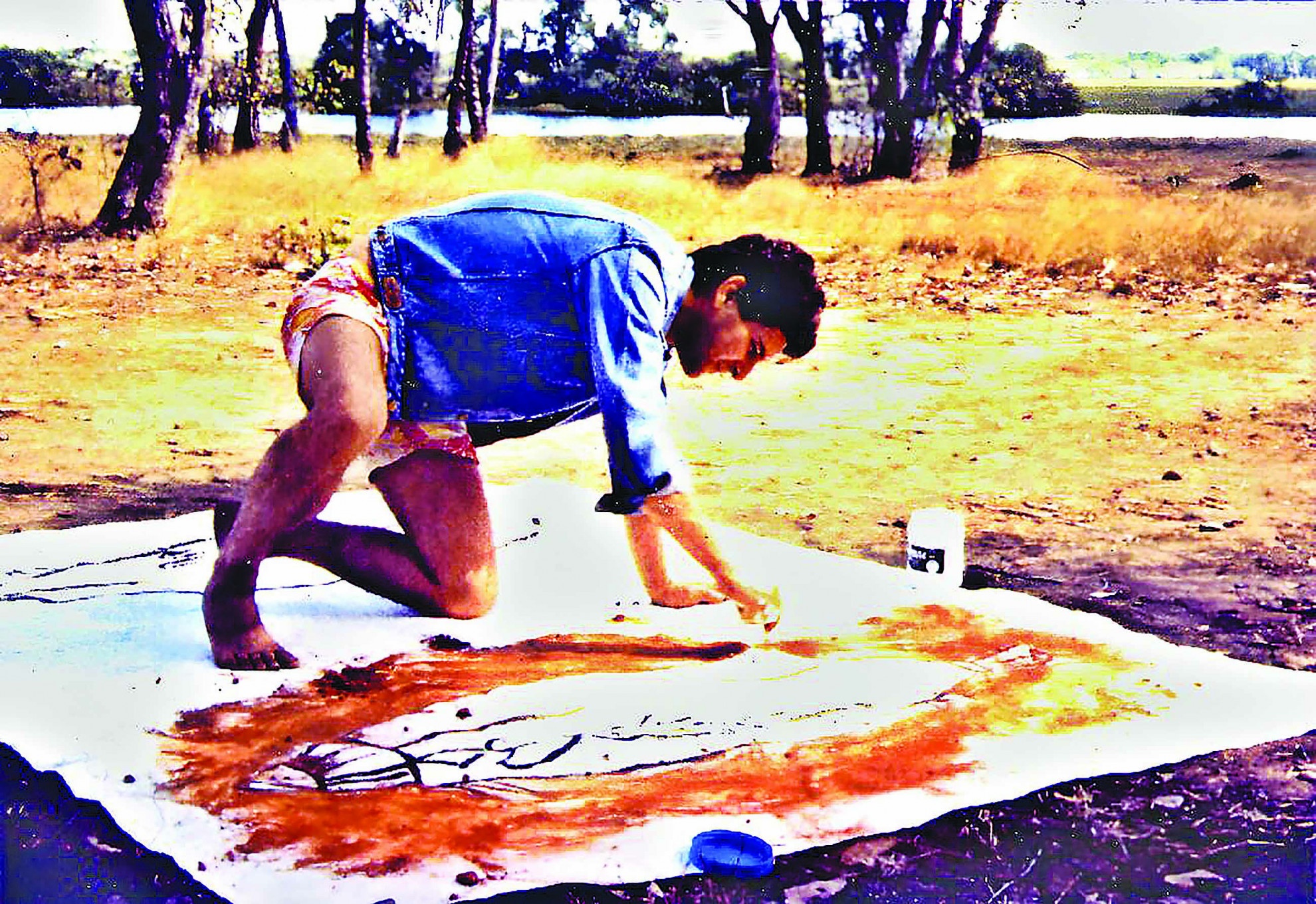 Ma non solo di formazione accademica si è alimentato l’universo simbolico e artistico di Ghielmetti durante questi anni: lo stupore estetico suscitato in lui quando ancora bambino dalla visione di una pittura preistorica è lo stesso tipo di emozione che lo porta a voler scoprire nuovi orizzonti geografici e mentali, facendolo partire dal Ticino verso luoghi lontani, non con il manuale da turista, quanto piuttosto con un taccuino, due pennelli e una bussola. “Ho sempre amato spostarmi e non essere mai fermo, vivere altre culture”, ci confessa. Ed è così come, ancora giovane studente, mosso dalla passione per il rock, parte prima per l’Inghilterra, alla quale seguiranno gli anni di vita a Milano, poi a Parigi, dove scoprirà il dadaismo e il pensiero rizomatico, coniato appunto da Deleuze. A questi soggiorni europei seguiranno voli più audaci, come è il caso dei viaggi nel sud del Marocco, vicino al Sahara, alla scoperta del popolo Berbero, o la conoscenza degli Aborigeni australiani, della loro arte, del loro pensiero e dei loro canti. In una sorta di circumnavigazione artistica, Ghielmetti si ritrova poi sulle Isole del Pacifico francese, in Nuova Caledonia, dove scopre che lo stato d’animo laggiù denominato “Fiu” rappresenta una specie peculiare di noia dettata dalla loro condanna a vivere in una primavera perenne, in assenza di altre stagioni.