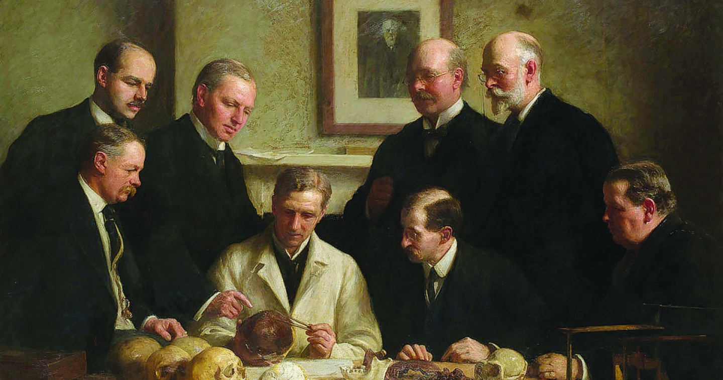 L’esame del teschio di Piltdown, quadro dipinto da John Cooke nel 1915