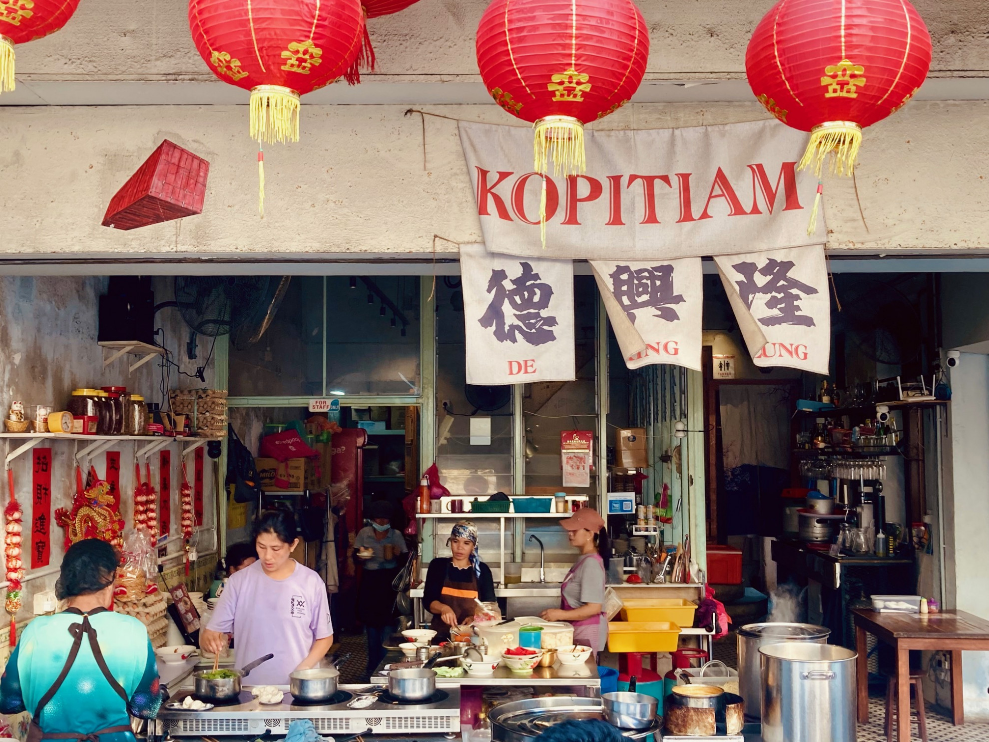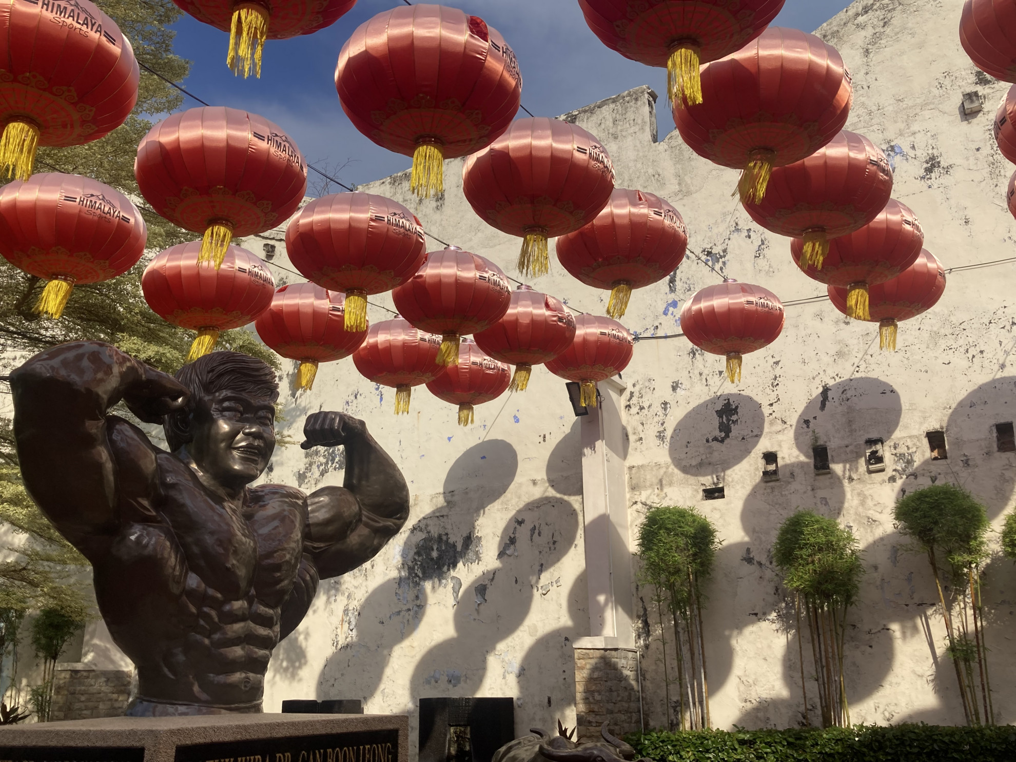 © R.S.I trishaw scorrazzano anche per le vie del centro, incuranti dei pedoni, visti come un ostacolo, trattati come un fastidio. Jonker Street, con il suo mercato notturno, è la via più trafficata, congestionata, rumorosa, quella in cui i viaggiatori più pigri restano intrappolati: lì mangiano, bevono, dormono, comprano souvenir, si scattano foto-ricordo. Al confine tra Jonker Street e la Malacca che non seduce il turismo di massa c’è una statua di un uomo che flette i muscoli: sopra c’è scritto Datuk Wira Dr. Gan Boon Leong, Mr. Universo, Mr. Asia, Mr. Malesia, Mr. Malacca. In gioventù, come body builder, fu l’orgoglio dei suoi concittadini. Quando smise, capitalizzò la propria popolarità diventando un politico e inventandosi proprio Jonker Street, che prima era una via come tutte le altre, dove subito diminuiscono le insegne e aumentano i muri scrostati, spuntano pubblicità ingiallite dal tempo e piante di un verde così intenso da rivaleggiare con il rosso della piazza. I locali in cui si va a cercare un po’ di tregua dalla calura sono spesso un enigma, e solo una volta dentro capisci se sei entrato in un negozio di antiquariato, in casa di qualcuno o in un bar, dove spesso ad accoglierti ci sono uccelli colorati in gabbie di legno, se non addirittura liberi, in un’atmosfera da tropici d’altri tempi.