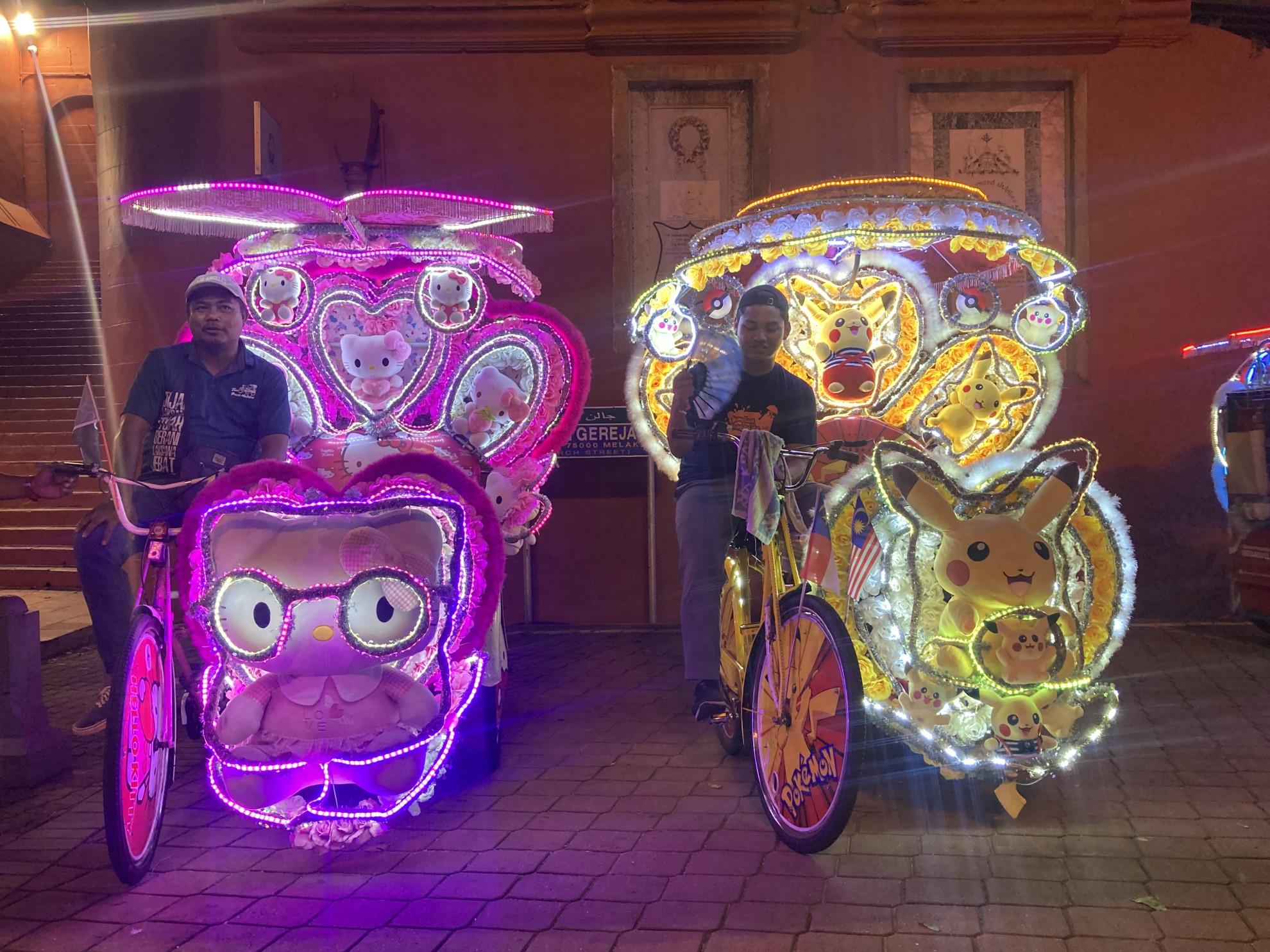 © R.S.A rompere la magia ci pensano i coloratissimi e rumorosissimi trishaw, un mutante con ruote a pedali, a metà tra un grosso triciclo e un risciò (da cui il nome). Hanno casse di bassa qualità da dove viene sparata musica di pessima qualità ad alto volume. I conducenti se ne stanno spaparanzati in attesa dei turisti, specialmente quelli con bambini al seguito, attratti non dal rosso Malacca, ma dai colori delle luci al neon, dei fiori e dei pupazzi che avvolgono il trishaw: Hello Kitty, Spiderman, Pikachu, Minions… ogni gusto e tonalità del kitsch, dal rosa shocking all’azzurro zucchero filato, è rappresentato per accontentare tutti. I tour costano dai 10 franchi in su, molto più in su, a seconda della tua abilità di trattare. Ti portano sul lungofiume un po’ mesto, dove si affacciano locali che hanno svenduto la propria anima in cambio di dollari, euro, yen e qualunque valuta abbia più peso del ringgit locale. La chiamano la Venezia d’Oriente. E ci vuole del coraggio. Se sei fortunato, però, puoi avvistare un varano delle mangrovie che si tuffa in acqua.
